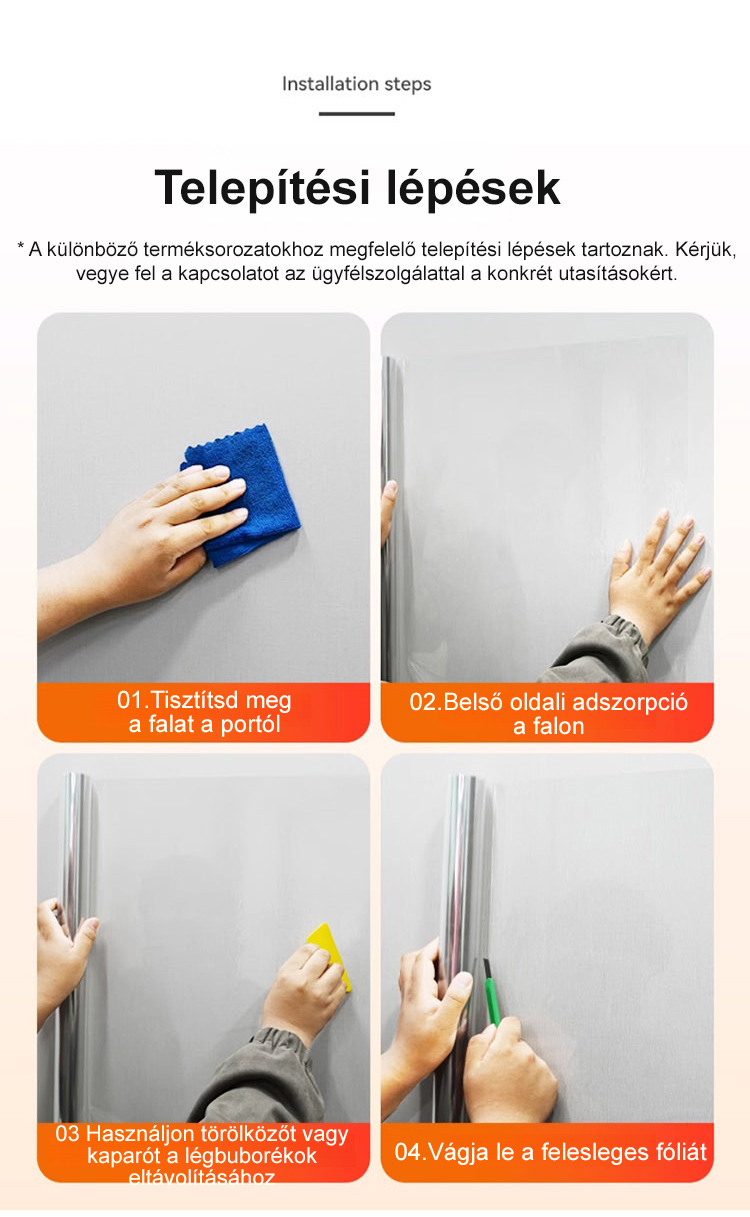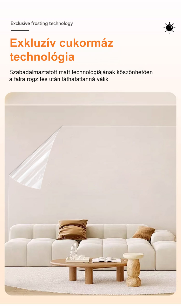 Elektrosztatikus tapadású, vízálló és nedvességálló falvédő fólia